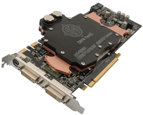 | Американская компания BFG Technologies объявила о выпуске двух новых видеокарт топовой категории на базе недавно анонсированного чипа NVIDIA GeForce 8800 Ultra. Как известно, во второй день мая NVIDIA и партнёры ещё раз доказали своё лидерство в сегменте самых производительных и дорогих видеокарт. Более того, акцию по усилению линейки GeForce 8800 можно рассматривать как "упреждающий" удар по основному конкуренту AMD и грядущей серии Radeon HD 2900. GeForce 8800 Ultra сохранила все преимущества предыдущего флагмана GeForce 8800 GTX, включая поддержку DirectX 10, унифицированную шейдерную архитектуру, 128 потоковых процессоров, 384-битный интерфейс памяти. За приставку Ultra компании NVIDIA пришлось заплатить выпуском новой ревизии чипа G80 с улучшенными частотными характеристиками и уменьшенным энергопотреблением. Вместе с тем, была поднята частотная планка для микросхем памяти GDDR3. BFG NVIDIA GeForce 8800 Ultra 768 Мб PCIe полностью дублирует предложенные разработчиком графического чипа характеристики, дизайн печатной платы и систему охлаждения. Видеокарта от BFG может отличаться от основной массы подобных продуктов только упаковкой, комплектацией и логотипом на вентиляторе. Новинка ожидается в розничной продаже по цене $829 и уже доступна через сеть BFG Web Store. Спецификации BFG NVIDIA GeForce 8800 Ultra 768 Мб PCIe: Графическое ядро: NVIDIA GeForce 8800 Ultra (G80); Количество универсальных конвейеров: 128; Частота ядра: 612 МГц; Частота универсальных конвейеров: 1500 МГц; Объём памяти: 768 Мб; Тип памяти: GDDR3; Частота памяти: 1080 (2160) МГц; Пропускная способность памяти: 103,7 Гб/с; Графический интерфейс: PCI Express 16x; Поддержка HDCP: есть; Видеовыходы: 2 х Dual-Link DVI-I, S-Video (HDTV-выход); Система охлаждения: референсная, разработанная для NVIDIA GeForce 8800 Ultra; Комплект поставки: 2 переходника DVI-VGA, 2 кабеля для подключения внешнего питания, переходник для коммутации с HD-телевизором по компонентному входу, диски с драйверами и фирменными утилитами, фирменная майка от BFG Technologies. BFG NVIDIA GeForce 8800 Ultra WC 768 Мб PCIe повторяет все рекомендации разработчика GPU, кроме системы охлаждения. Для этой модели американская компания использовала компактный медный водоблок, созданный совместно с Danger Den, который заменил стандартный "двухэтажный" воздушный кулер. Подобное решение было использовано для охлаждения одной из моделей от BFG на чипе GeForce 8800 GTX, представленной в ноябре прошлого года. Производитель обещает, что энтузиасты, имеющие жидкостную систему охлаждения и желающие приобрести флагманскую видеокарту, в самое ближайшее время смогут это сделать. Сейчас можно сделать предварительный заказ BFG GeForce 8800 Ultra WC в сети BFG Web Store. Спецификации BFG NVIDIA GeForce 8800 Ultra WC 768 Мб PCIe: Графическое ядро: NVIDIA GeForce 8800 Ultra (G80); Количество универсальных конвейеров: 128; Частота ядра: 612 МГц; Частота универсальных конвейеров: 1500 МГц; Объём памяти: 768 Мб; Тип памяти: GDDR3; Частота памяти: 1080 (2160) МГц; Пропускная способность памяти: 103,7 Гб/с; Графический интерфейс: PCI Express 16x; Поддержка HDCP: есть; Видеовыходы: 2 х Dual-Link DVI-I, S-Video (HDTV-выход); Система охлаждения: медный водоблок производства компании Danger Den; Комплект поставки: 2 переходника DVI-VGA; 2 кабеля для подключения внешнего питания; переходник для коммутации с HD-телевизором по компонентному входу; диски с драйверами и фирменными утилитами, фирменная майка от BFG Technologies; богатый набор аксессуаров для подключения водоблока к трубопроводу жидкостной системы охлаждения, в том числе в конфигур
